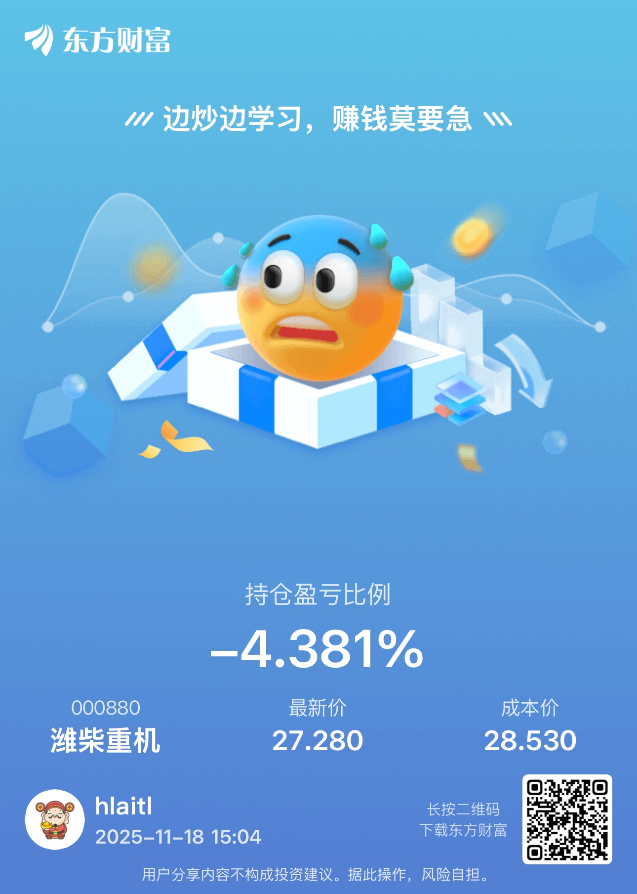 温馨提示: 1.根据《证券法》规定,禁止编造、传播虚假信息或者误导性信息,扰乱证券市场;2.用户在本社区发表的所有资料、言论等仅代表个人观点,与本网站立场无关,不对您构成任何投资建议。用户应基于自己的独立判断,自行决定证券投资并承担相应风险。《东方财富社区管理规定》