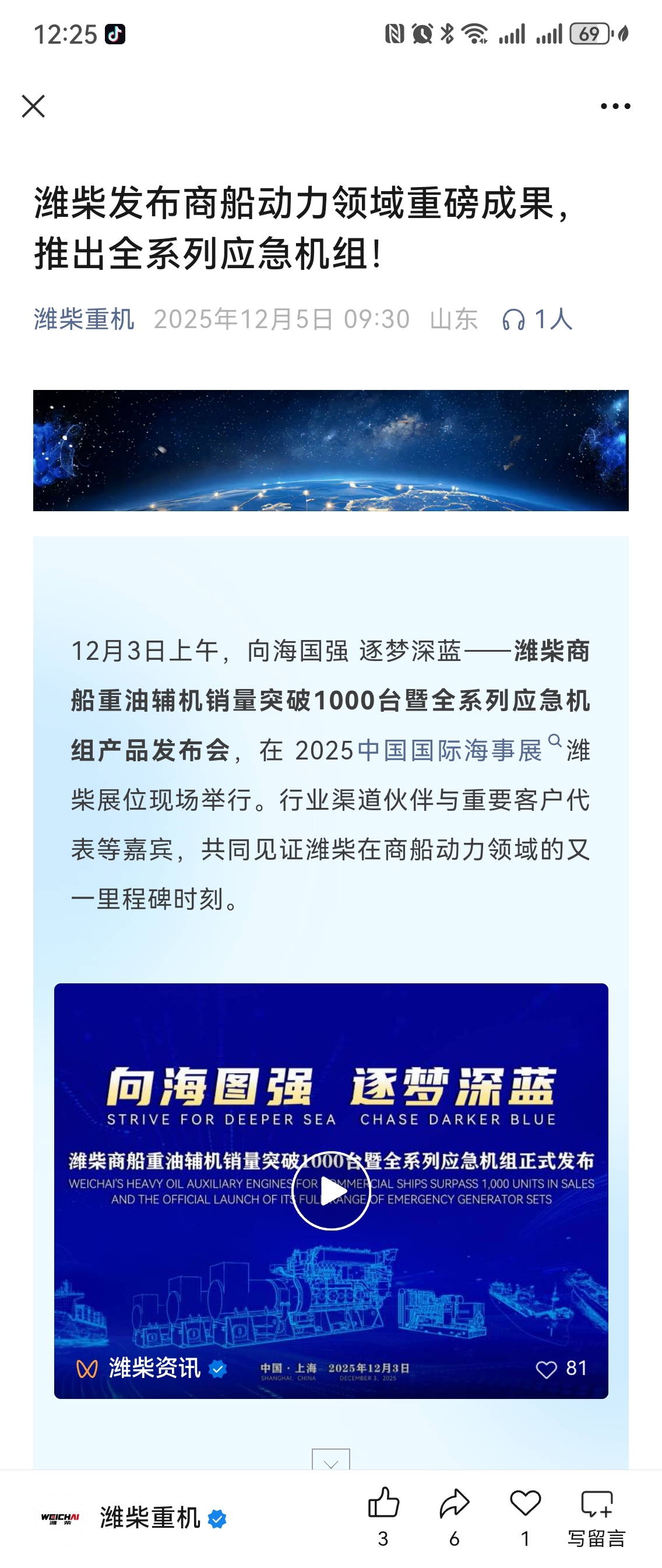 $潍柴重机(SZ000880)$ 这个怎么没水花呢