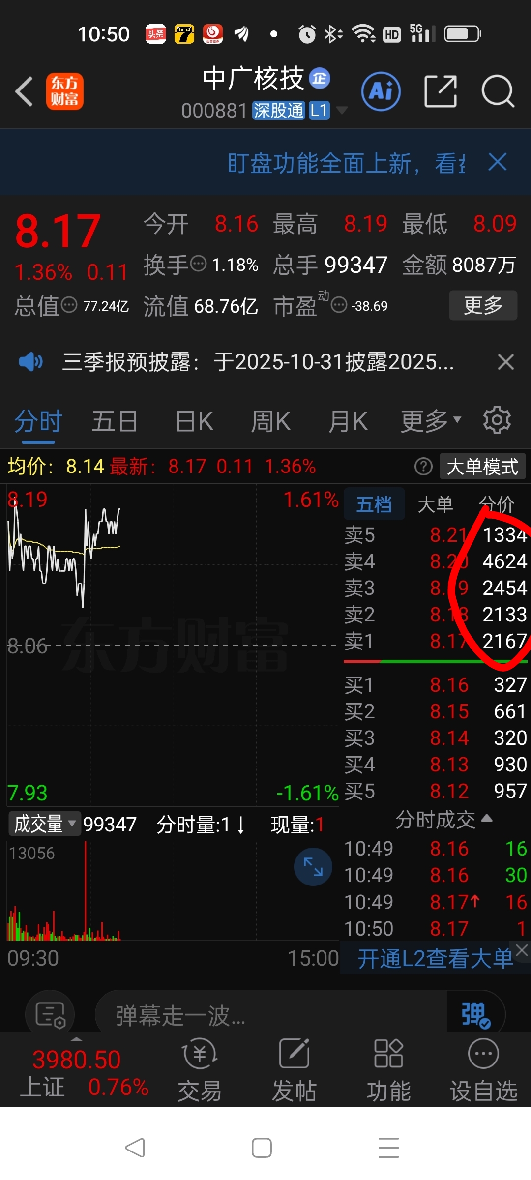 $中广核技(SZ000881)$ 压盘大而不跌,典型的压盘吸货!