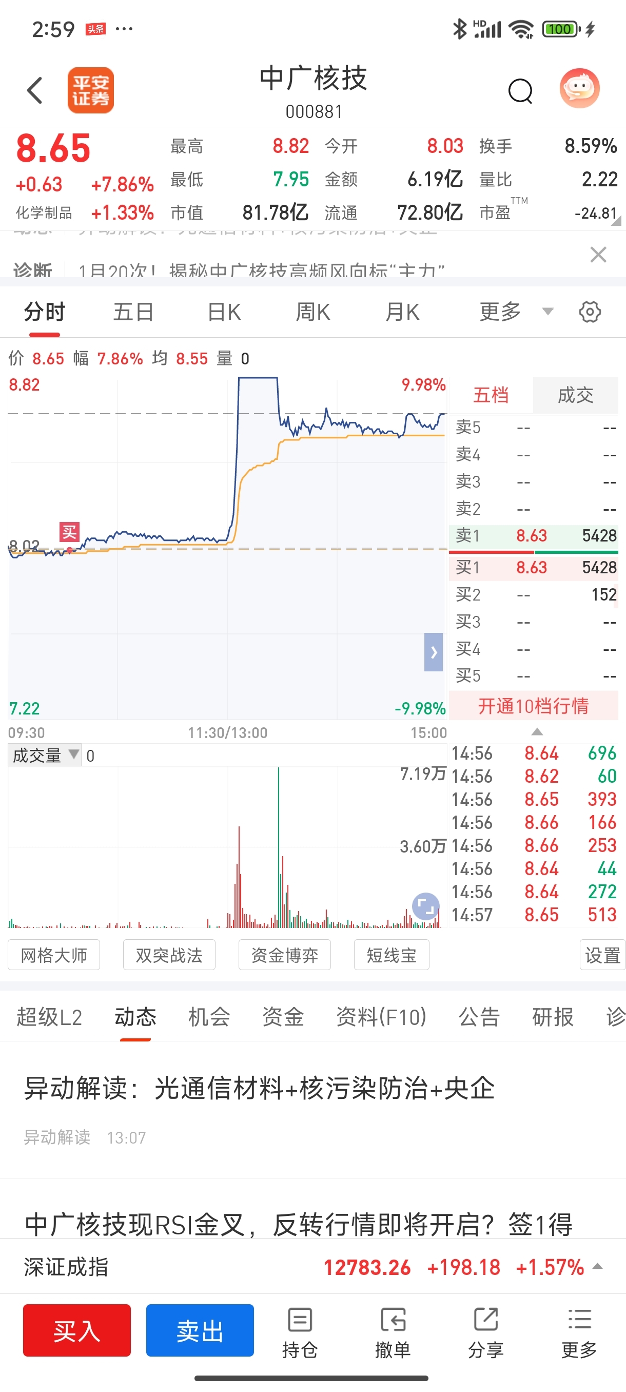 $中广核技(SZ000881)$ 时隔4个月我今天又回来了,这是有啥利好?一买就拉涨停也卖不了