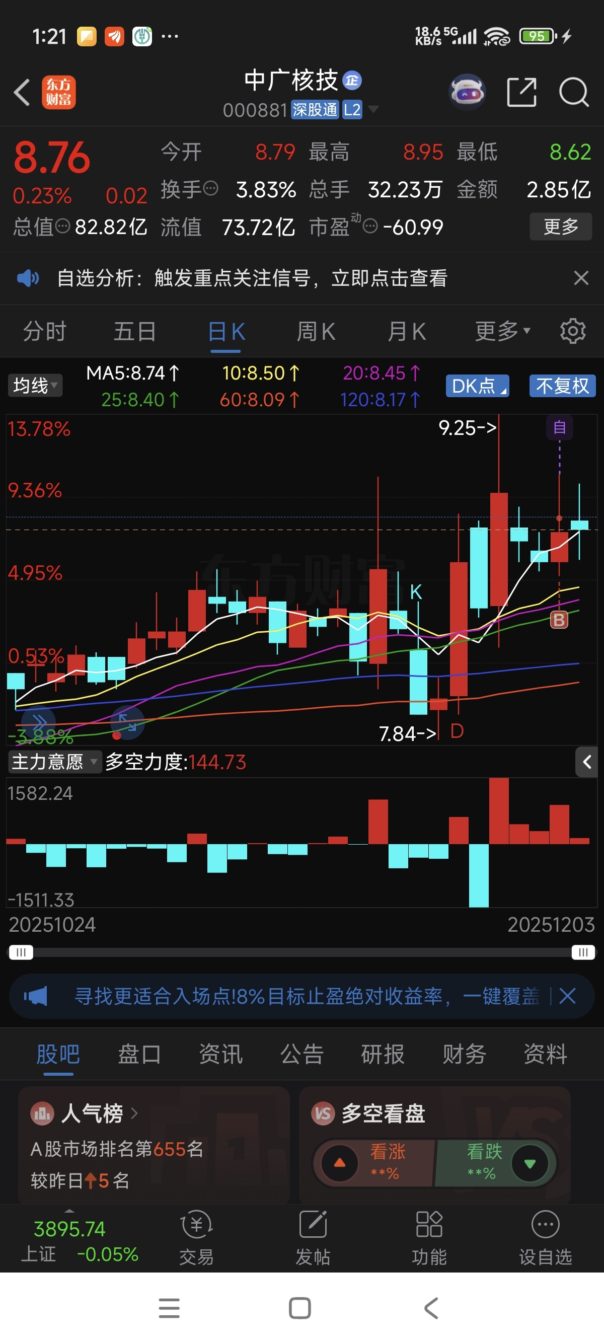 对于超短线而言,昨天8.80买的你,不及预期啊,看来我得把你买了!磨叽个啥呢?