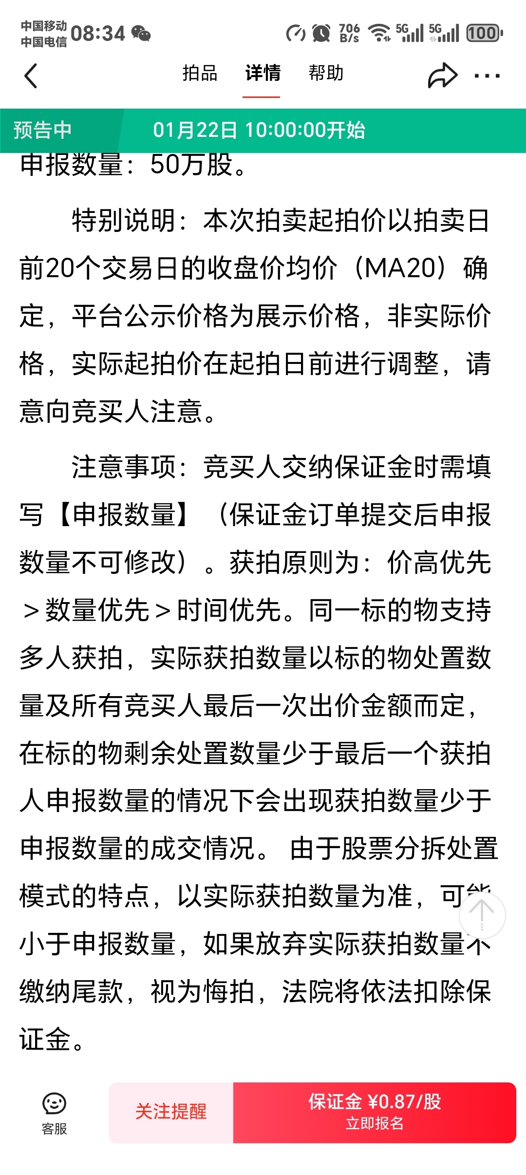 起拍价还没定好,是拍卖日前的20日均价