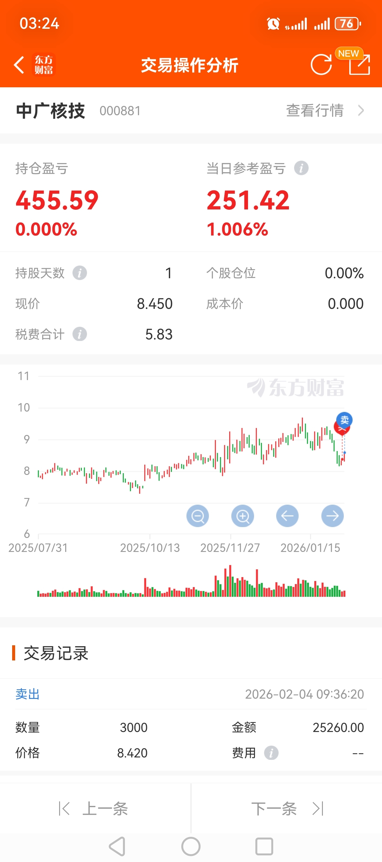 $中广核技(SZ000881)$ 持股一天,赚了两个点跑了。我其他股清仓了就来重仓你。先别涨太多,等我回来。