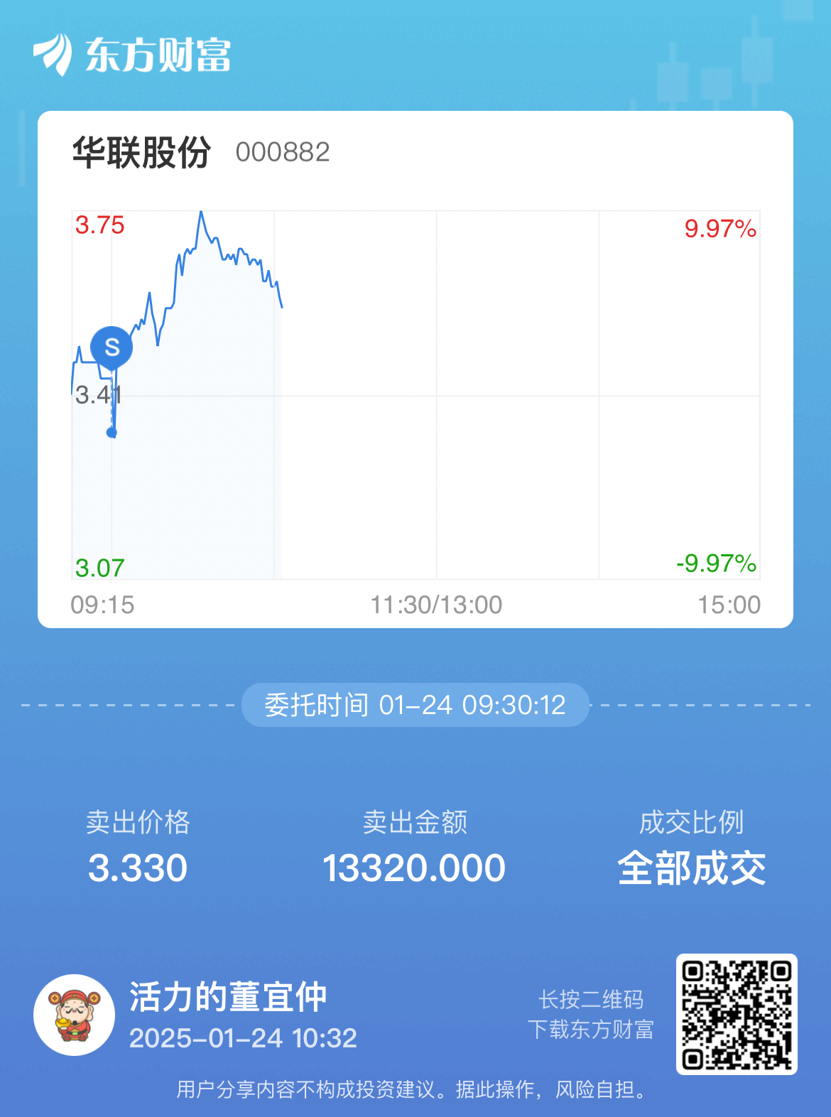 温馨提示: 1.根据《证券法》规定,禁止编造、传播虚假信息或者误导性信息,扰乱证券市场;2.用户在本社区发表的所有资料、言论等仅代表个人观点,与本网站立场无关,不对您构成任何投资建议。用户应基于自己的独立判断,自行决定证券投资并承担相应风险。《东方财富社区管理规定》