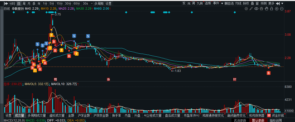 本次潜伏华联已经半个月了,最高位来到了2.09,最低到了1.92,始终没啥水花,