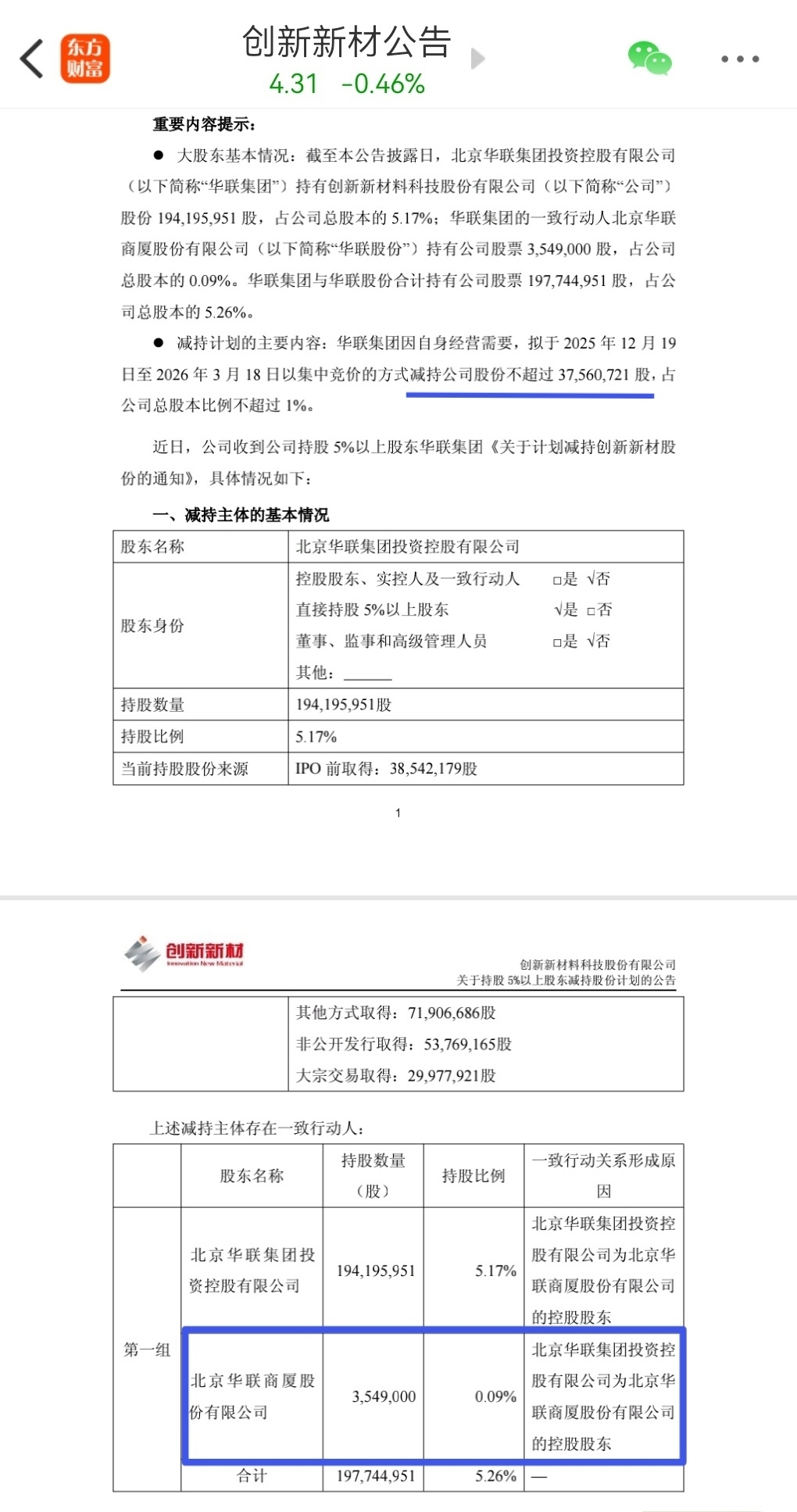 华联股份持有创新新材的股票,不太多,只有355万股。