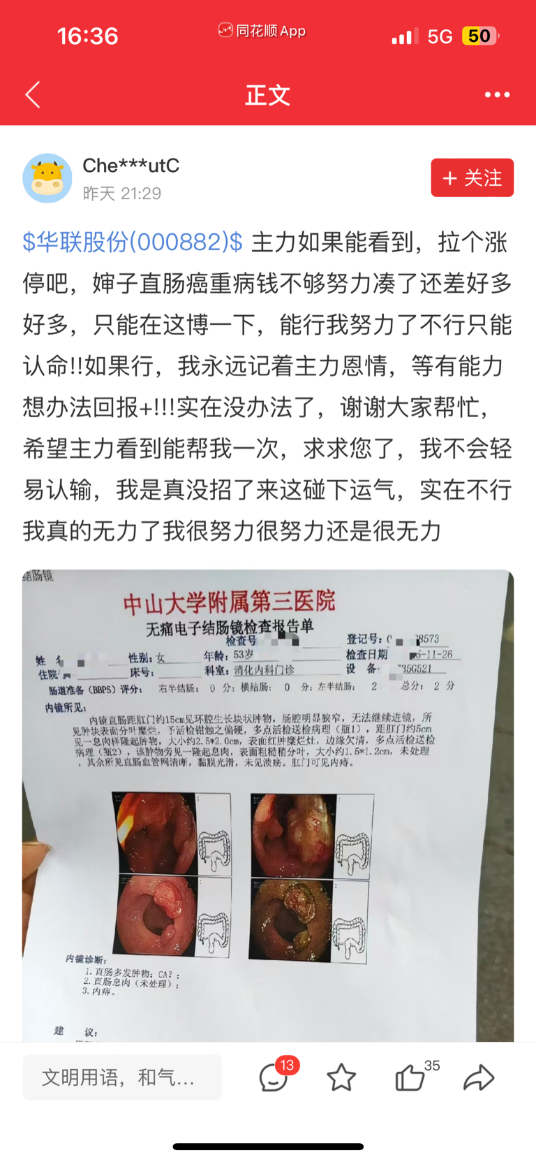$华联股份(SZ000882)$ 这个兄弟把那个襄阳轴承的话术也搬上来了,这个票主力确实狠恶心,没有那个格局给你拉涨停,但是我也希望能涨停帮到你,在这里面这么久,这个票的尿性太大了
