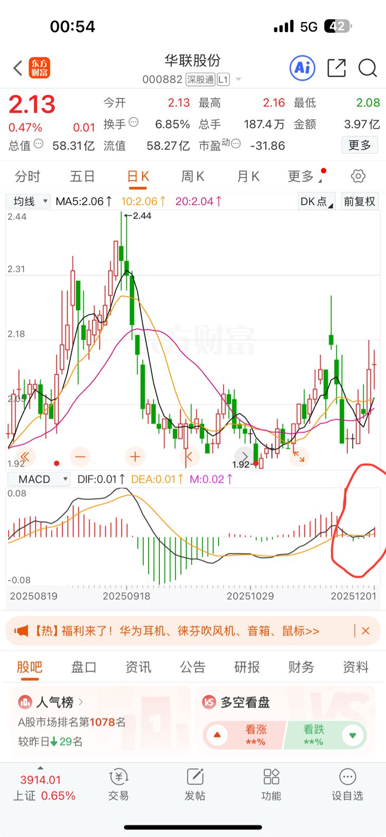 $华联股份(SZ000882)$ MACD金叉已现