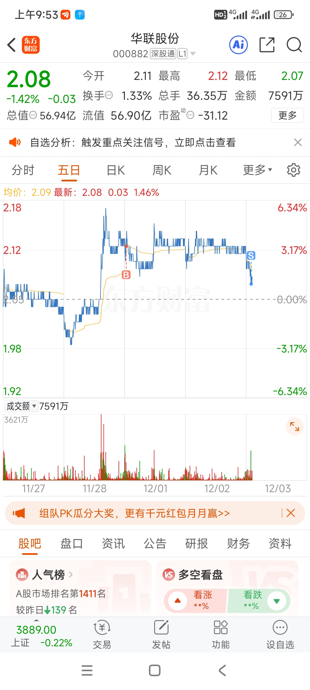 $华联股份(SZ000882)$ 没错,又是我,卖了就涨,绝对不犹豫一秒