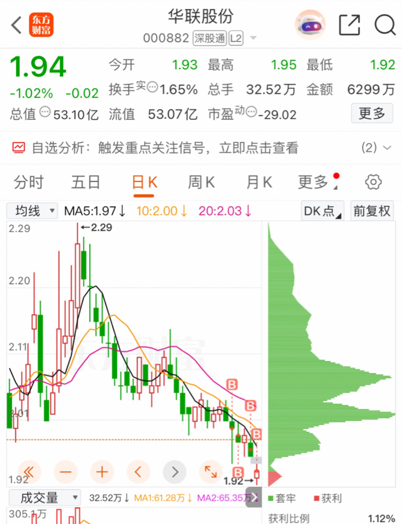 $华联股份(SZ000882)$ 333手已建仓,越跌越补