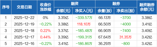 湖北能源:融资净偿还339.57万元,融资余额3.35亿元(12-22)