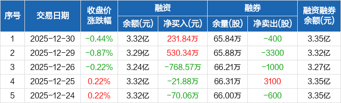 湖北能源:融资净买入231.84万元,融资余额3.32亿元(12-30)