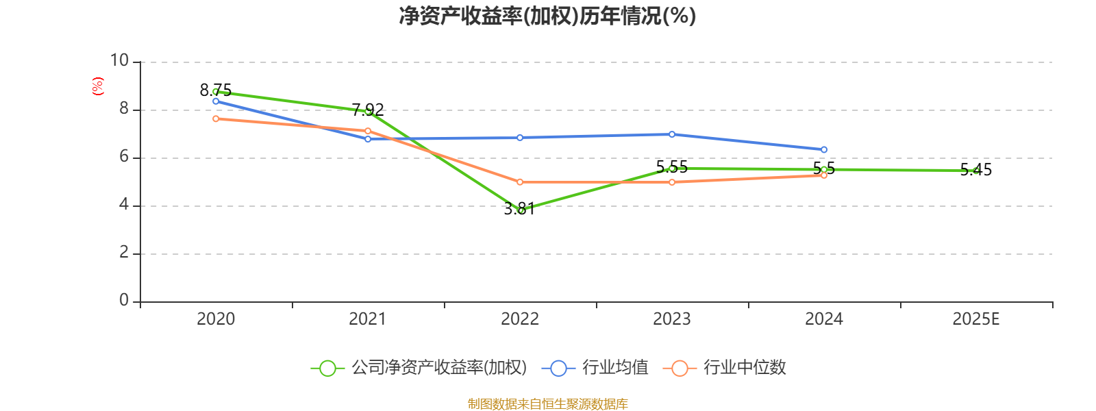 数据显示,2025年公司加权平均净资产收益率为5.45%,较上年同期下降0.05个百分点。