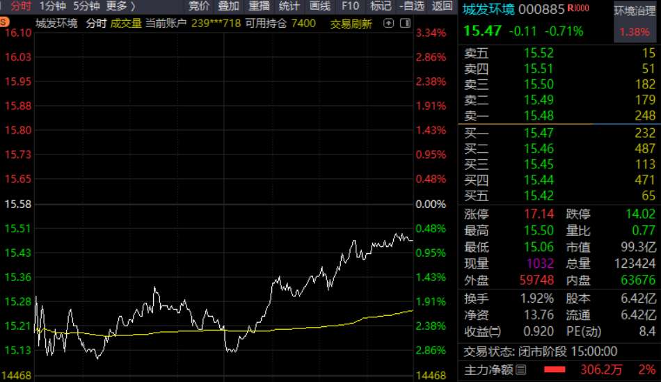 城发环境主力今天真是亏了,花了上千万元反复砸盘到15.20附近却砸下不去,只得在