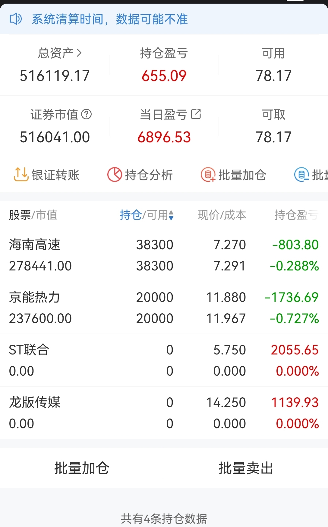 $海南高速(SZ000886)$ $京能热力(SZ002893)$ 50万实盘第6天,今天盈利+6896.53元!