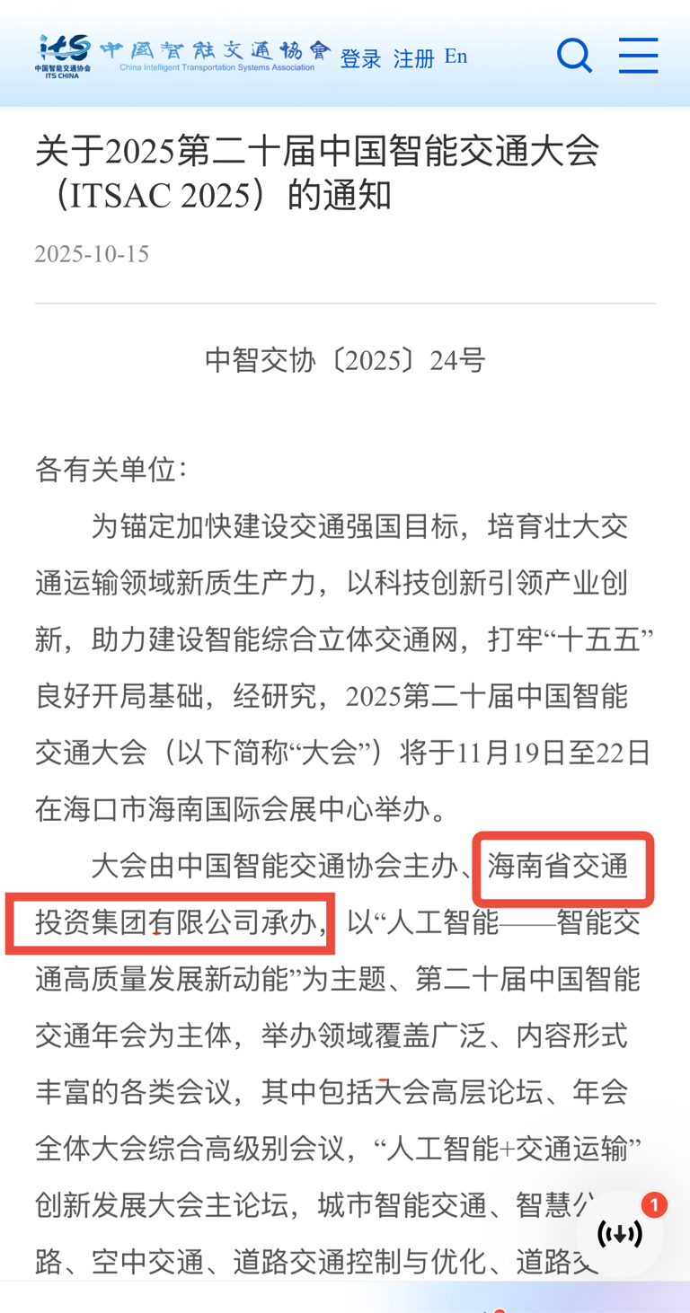 2025第二十届中国智能交通大会(以下简称“大会”)将于11月19日至22日在海