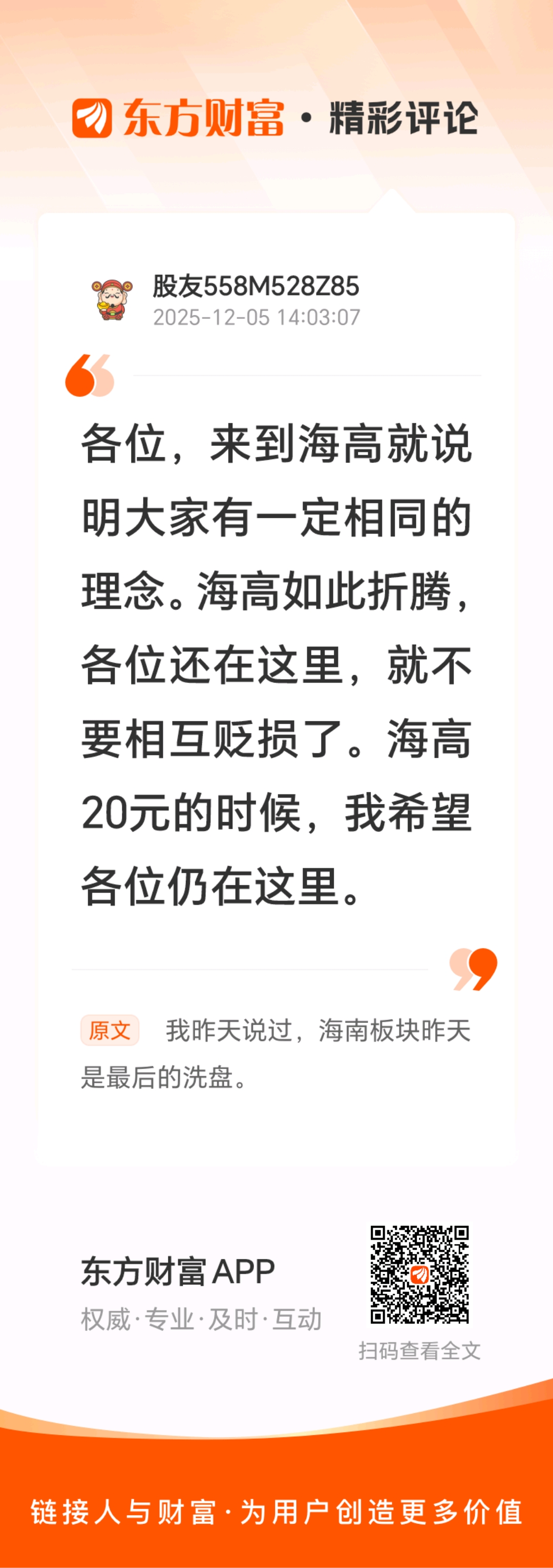//@股友558M528Z85 :各位,来到海高就说明大家有一定相同的理念。海高如此折腾,各位还在这里,就不要相互贬损了。海高20元的时候,我希望各位仍在这里。