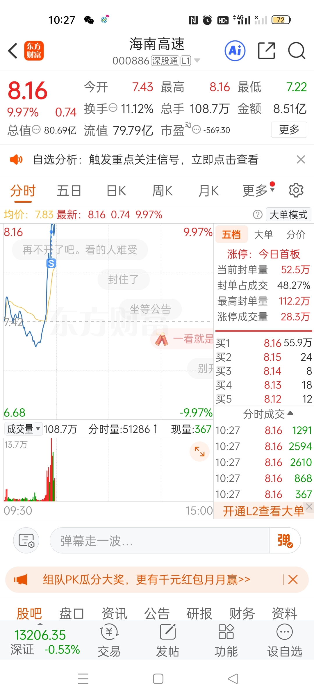 $海南高速(SZ000886)$ 落袋为安,留下的发财