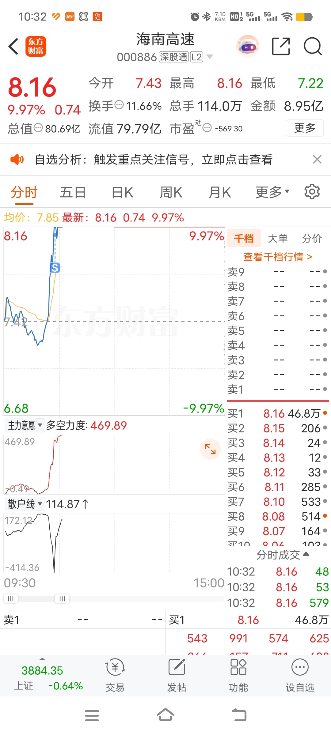 $海南高速(SZ000886)$ #炒股日记# 割肉亏100元 离场了,持股那么久,不耐烦了