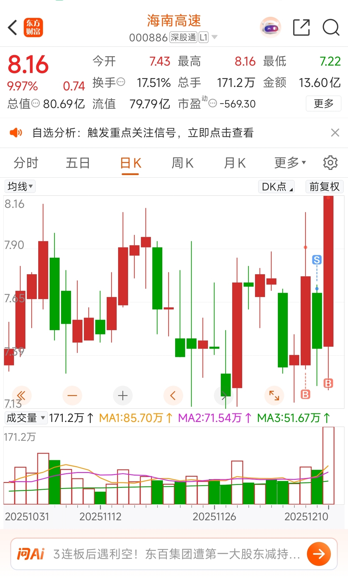 $海南高速(SZ000886)$ 杀个回马枪干就完事了