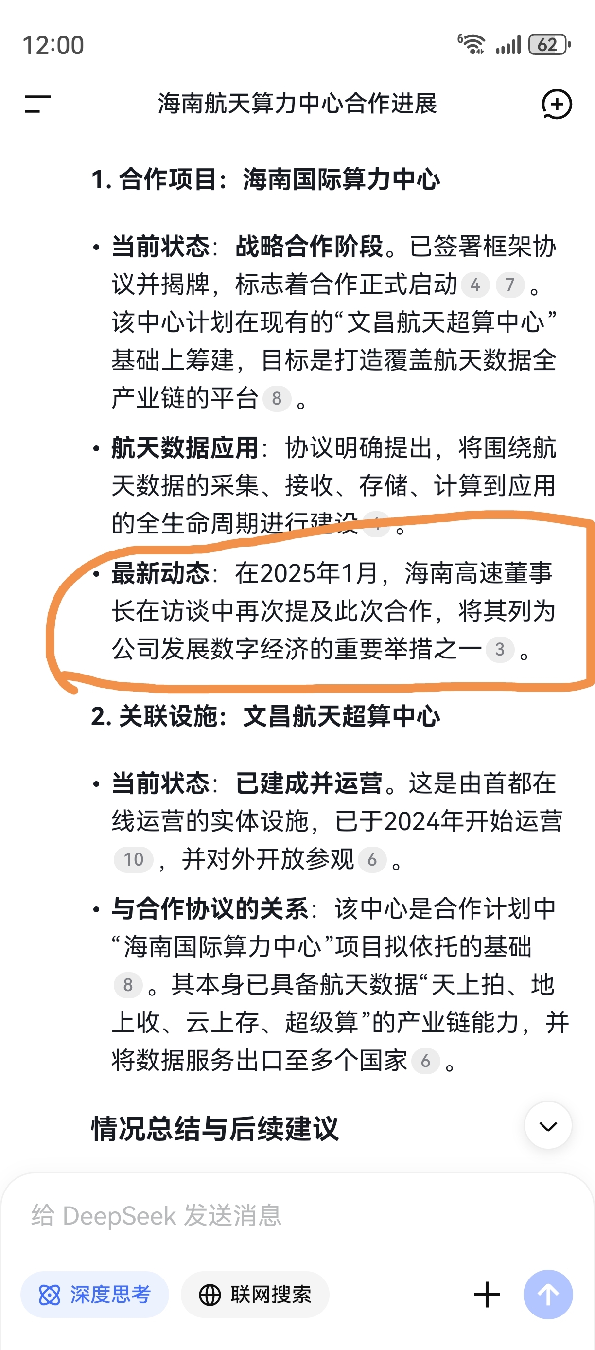 海南高速文昌航天算力中心,海南高速董事长今年1月份确认,请问董秘这事算数吗?