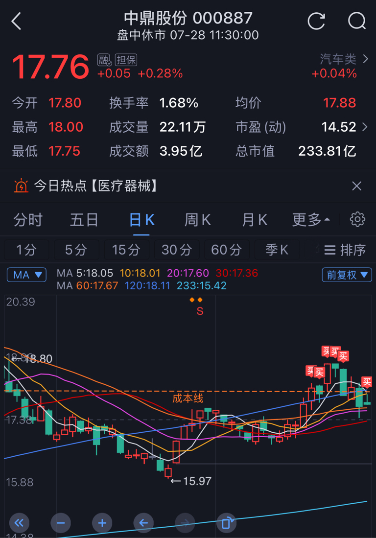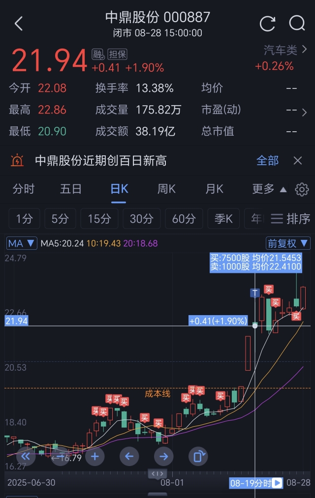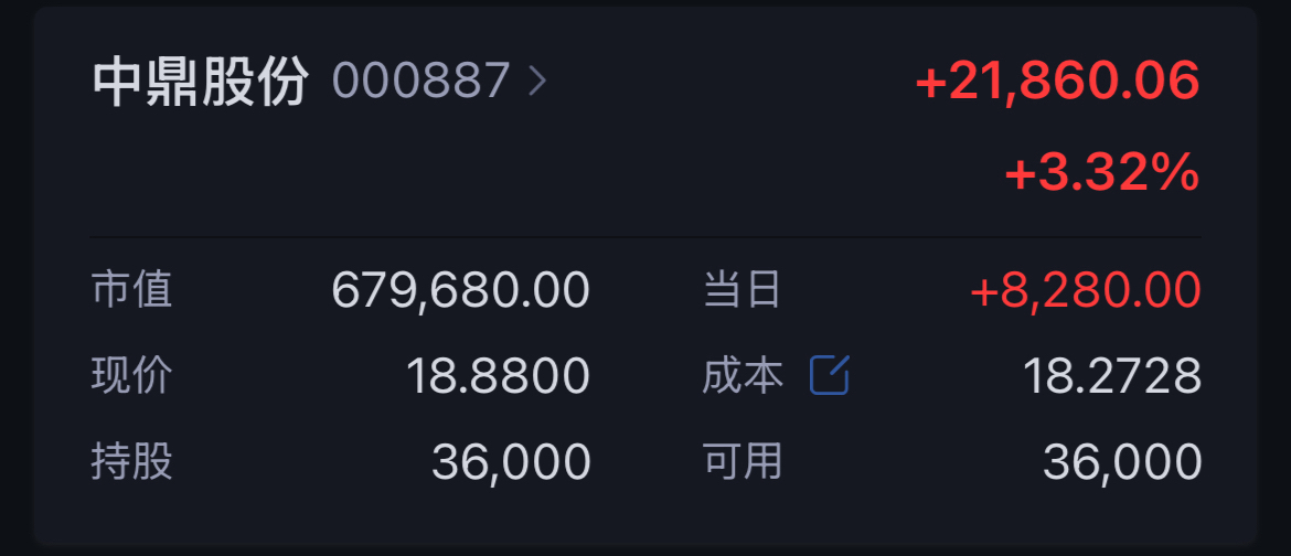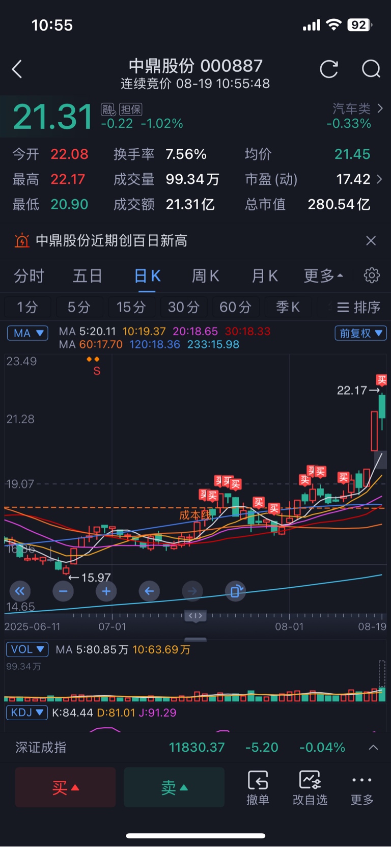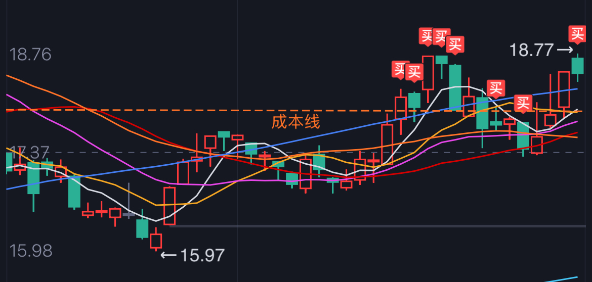 17.6一路调仓加仓择机买入,成本来到了19.5,这个成本还可以,在8.18日突破缺口下方,安全垫结对的厚实,未来三年看你的了鼎子,不创历史新高一股不出!
