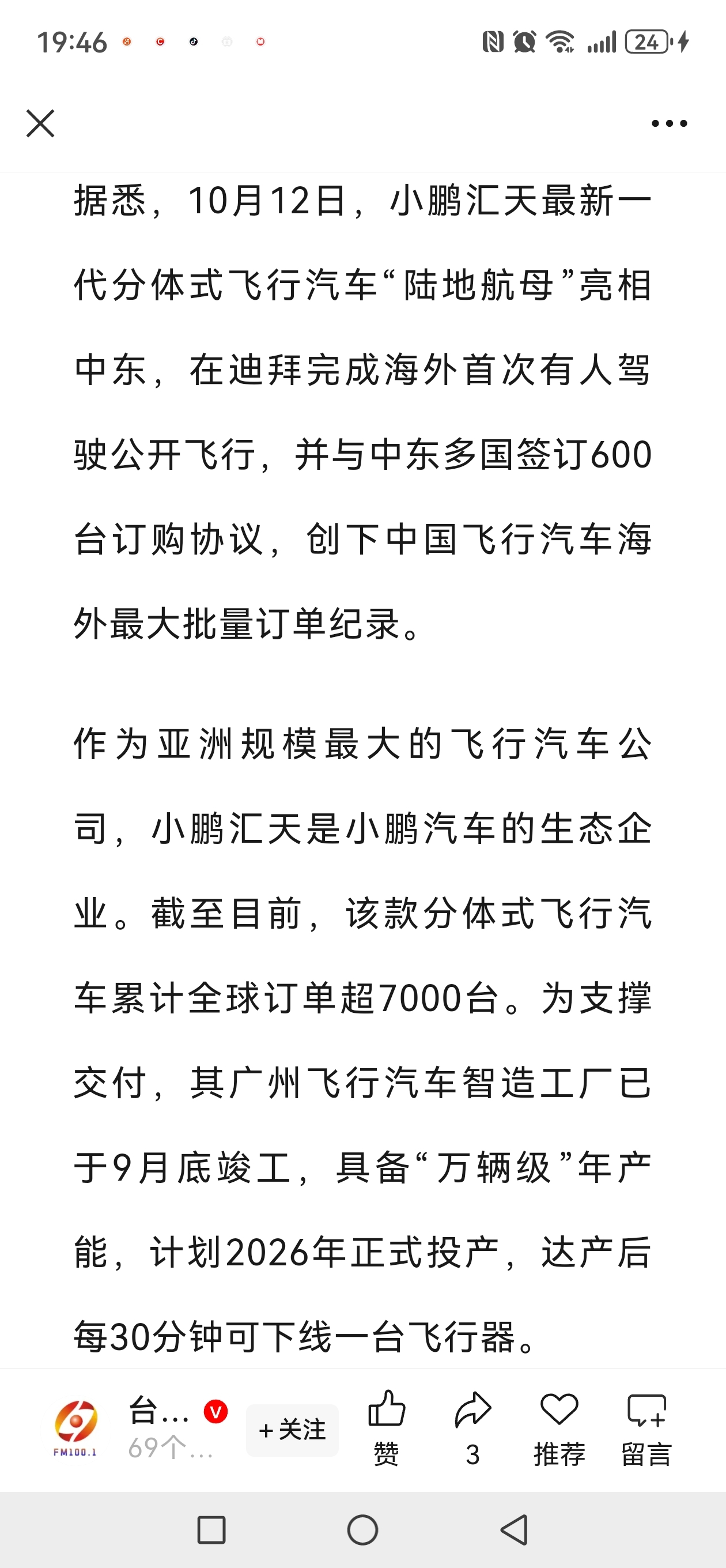 小鹏汇天最新一代分体式飞行汽车“陆地航母”亮相中东、15号冲上热搜