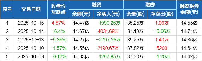 中鼎股份:融资净偿还1990.26万元,融资余额14.47亿元(10-15)