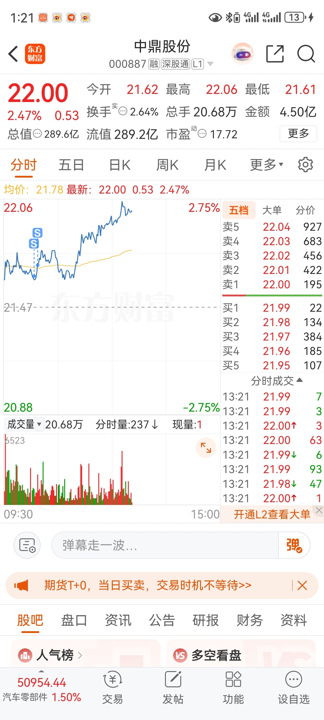 $中鼎股份(SZ000887)$ 着急用钱,没办法。先走了,留下的发财
