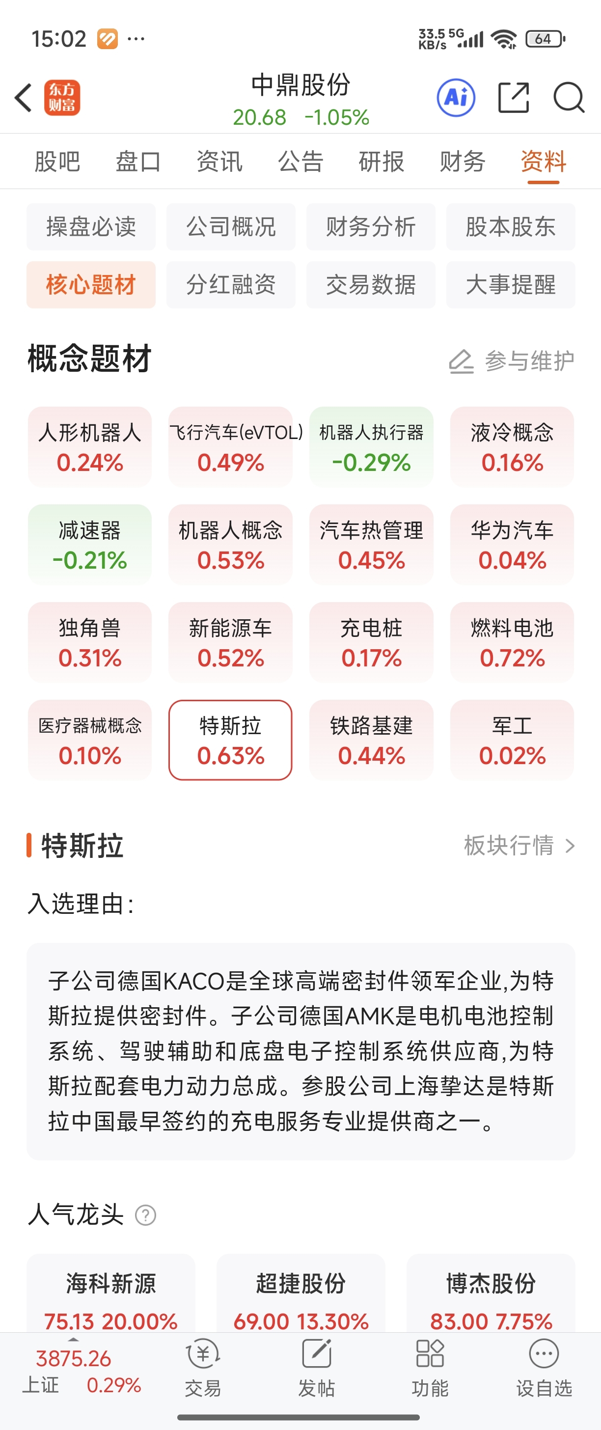 $中鼎股份(SZ000887)$ 你有什么脸跌一个点, 涨的时候你涨不动 ,跌起来最快, 涨不过板块 ,我从3月份22拿到现在快九个月了, 现在才20,业绩这么好,市盈率这么低,就是不涨。