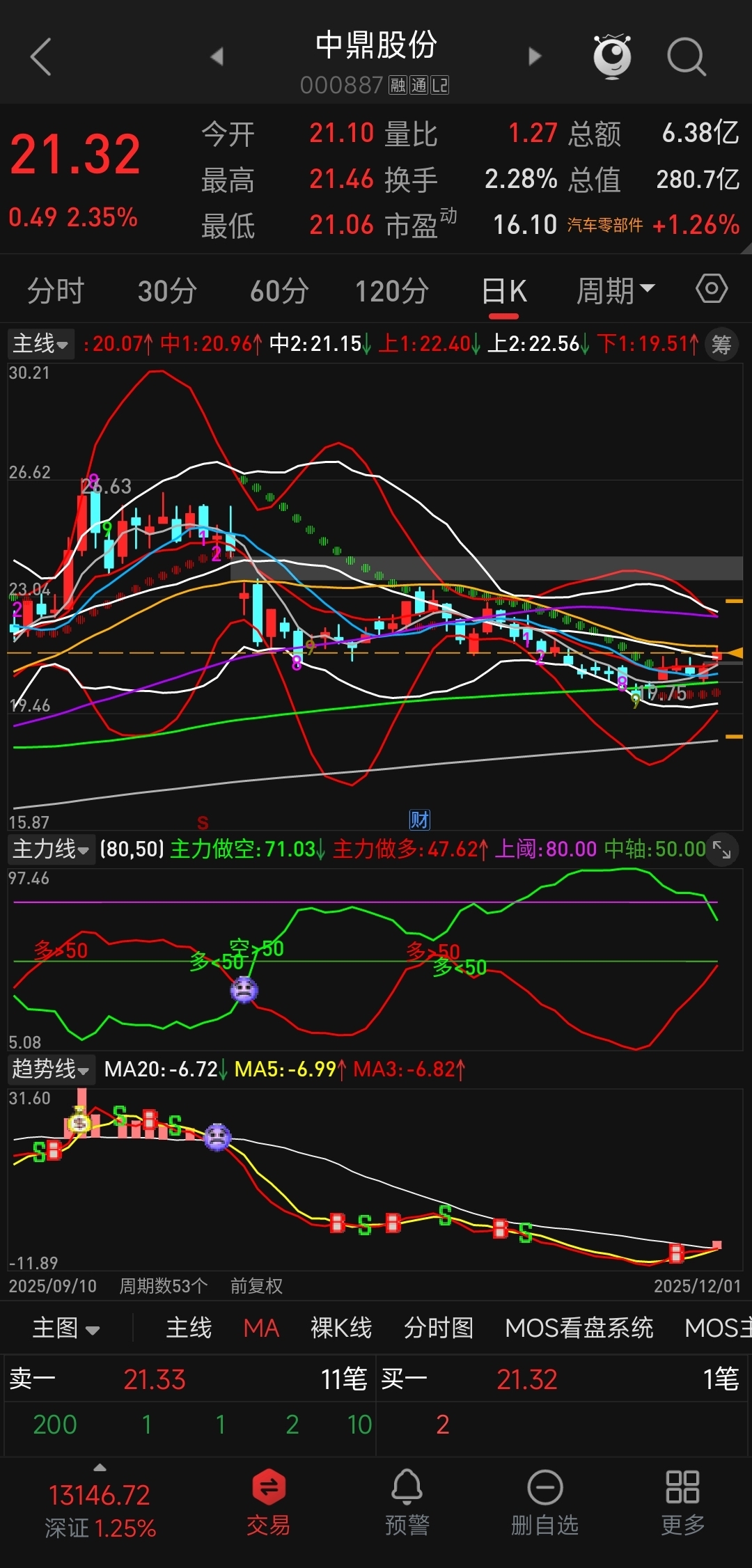 12/3众擎机器人T800发布。中鼎股份与众擎机器人战略合作。近期,主力做多线快