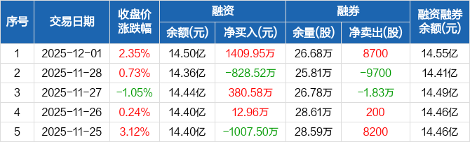 中鼎股份:融资净买入1409.95万元,融资余额14.5亿元(12-01)