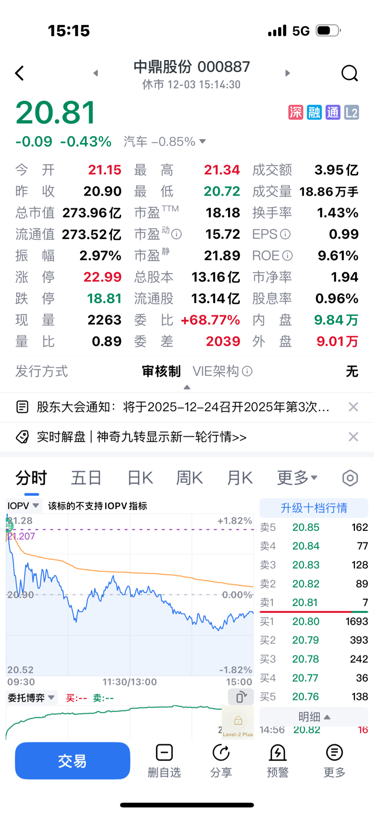 $中鼎股份(SZ000887)$ 一出利好,或董秘出来说话,如竞价高开你只管减仓就行,屡试屡爽。1号跳空缺口骗进来反弹不及自己预期那就说明自己操作错了。今天21.31减半仓。!