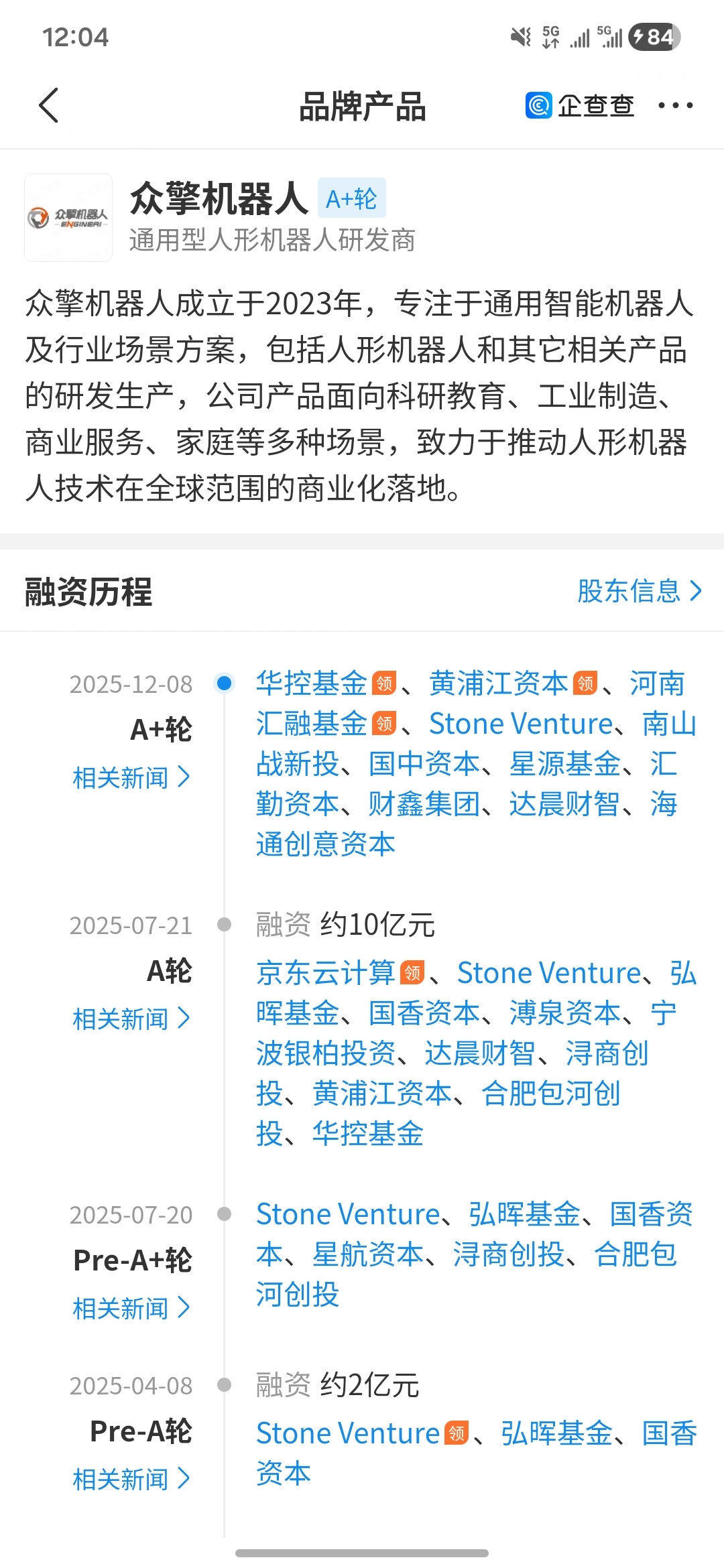 众擎又融资了,看样子鼎子是拿不到众擎的便宜筹码的