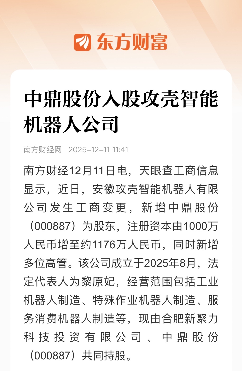 $中鼎股份(SZ000887)$ 从近期看,中鼎机器人的布局,暴露了他的野心,未来估计还有更有影响力的主导