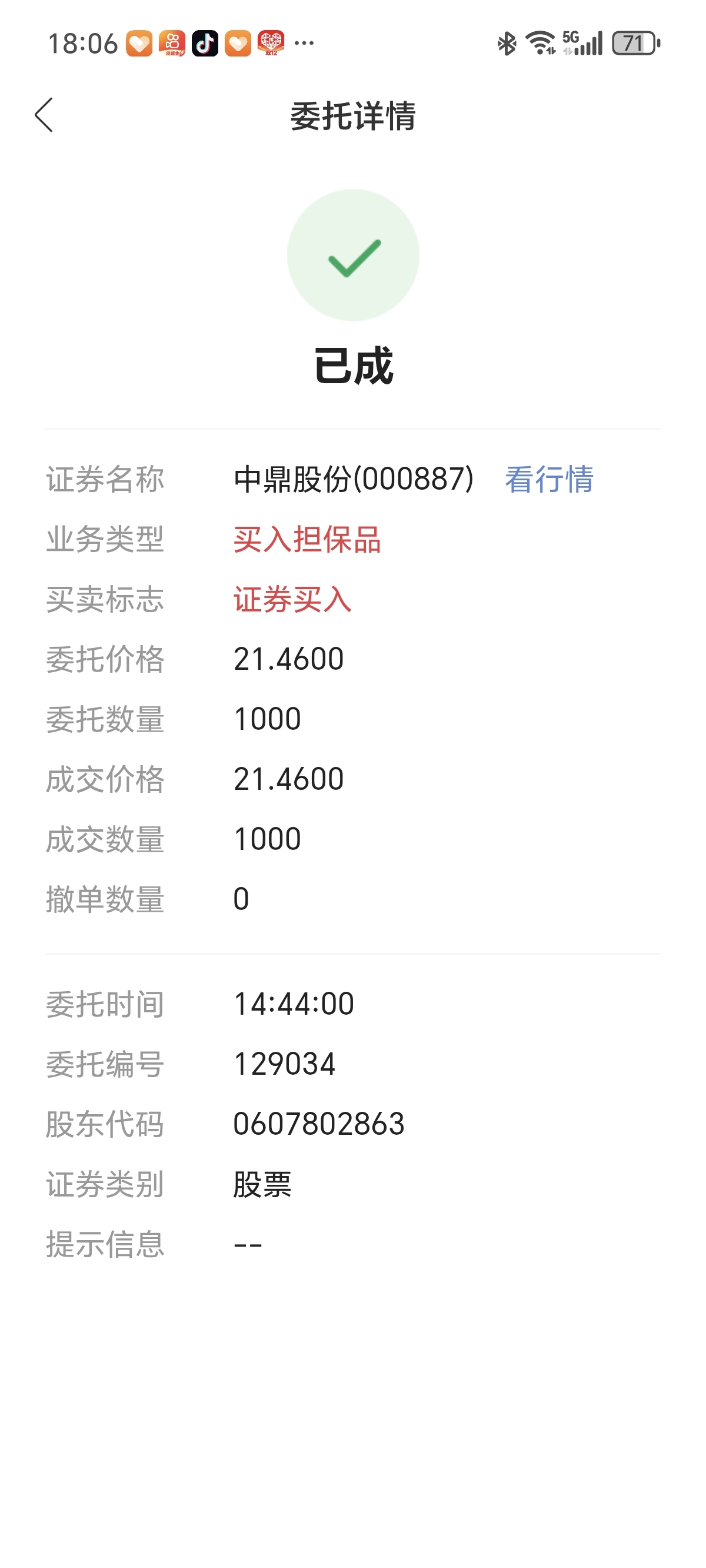 $中鼎股份(SZ000887)$ 没想到挂单21.46竟然成交了。周五已经明显看到多日阳线后上攻无力,日线背离,在22.09把大部分小鼎子的仓位减了,今天采取倒T的形式继续减仓,后面看再择机把它的仓位补回来