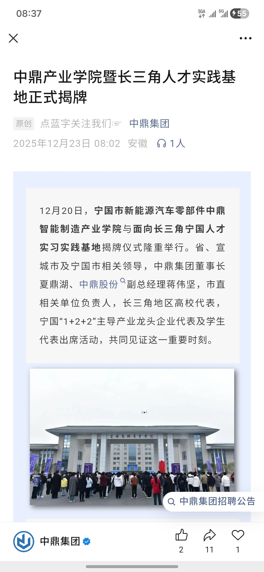 盘前咨询之中鼎产业学院暨长三角人才实践基地正式揭牌,详细内容移步破鼎集团公众号