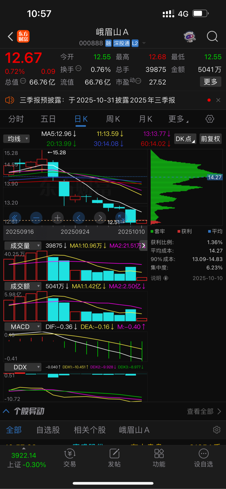 $峨眉山A(SZ000888)$ 跌 10 天够了吗