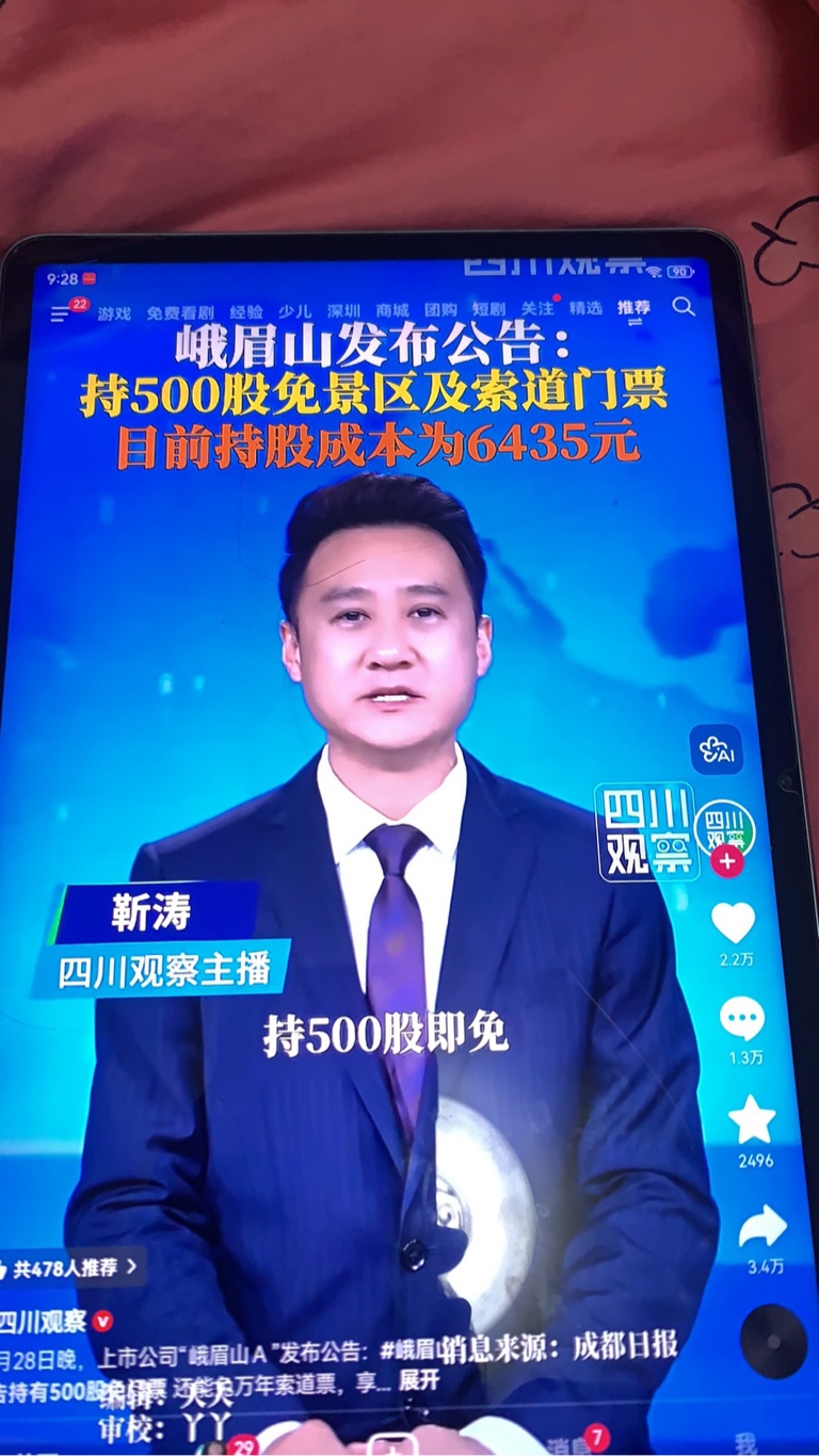 $峨眉山A(SZ000888)$ 周一买一手试试水