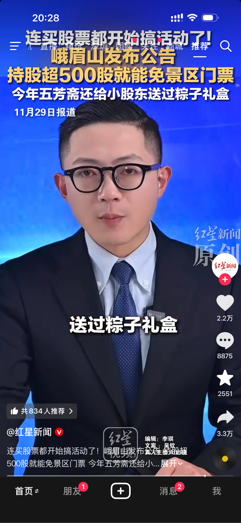 $峨眉山A(SZ000888)$ 请问各位股东,你们收到粽子了吗?
