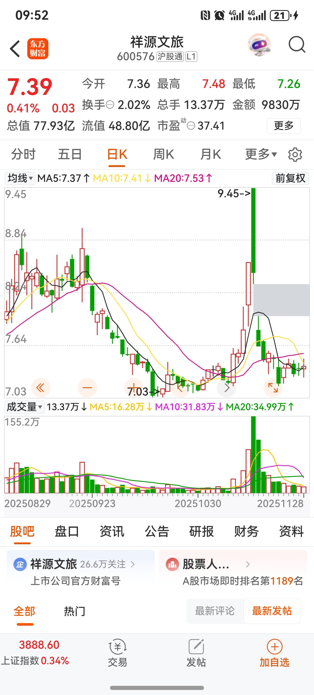 11月6日祥源文旅发布回馈以后连续拉高然后低开,目前已回落,感觉峨眉山可能会差不