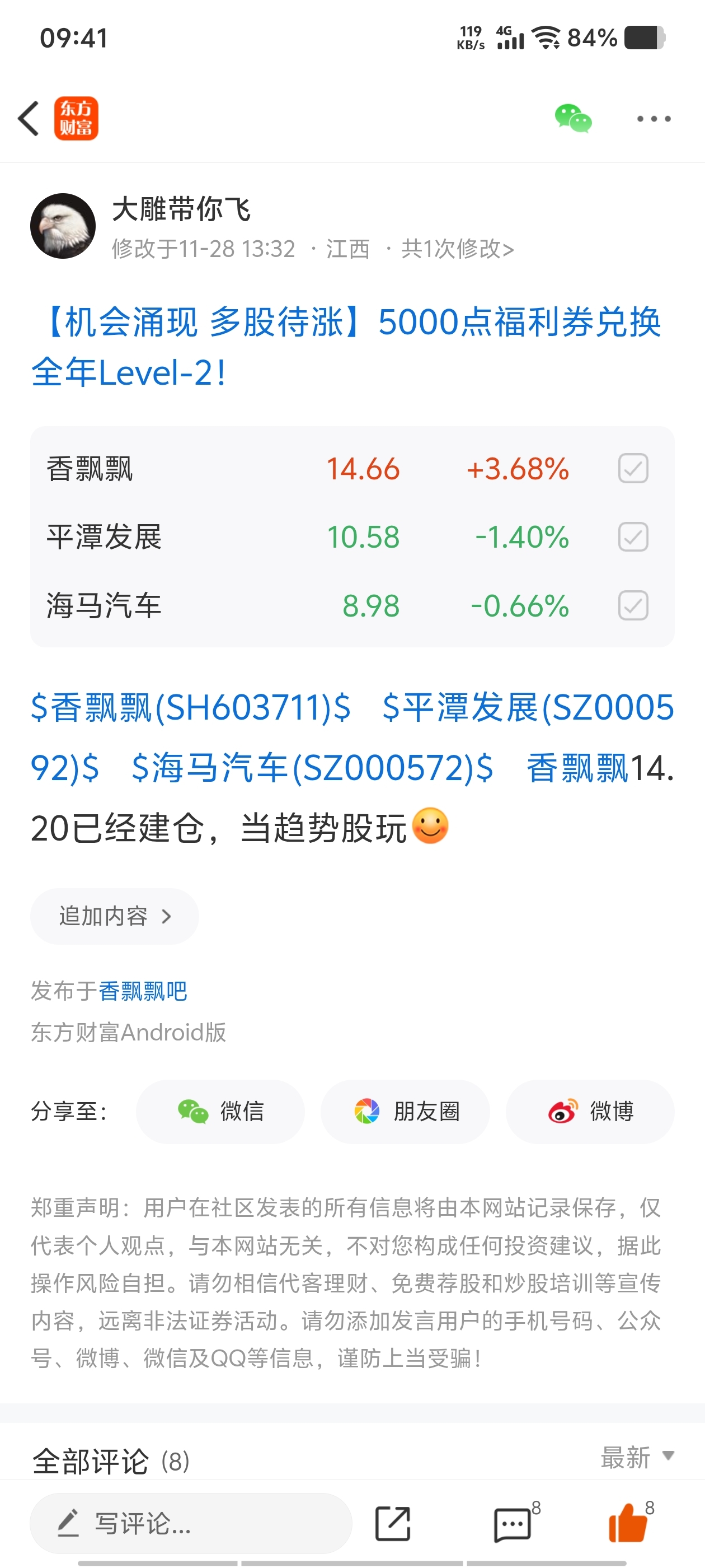 温馨提示: 1.根据《证券法》规定,禁止编造、传播虚假信息或者误导性信息,扰乱证券市场;2.用户在本社区发表的所有资料、言论等仅代表个人观点,与本网站立场无关,不对您构成任何投资建议。用户应基于自己的独立判断,自行决定证券投资并承担相应风险。《东方财富社区管理规定》