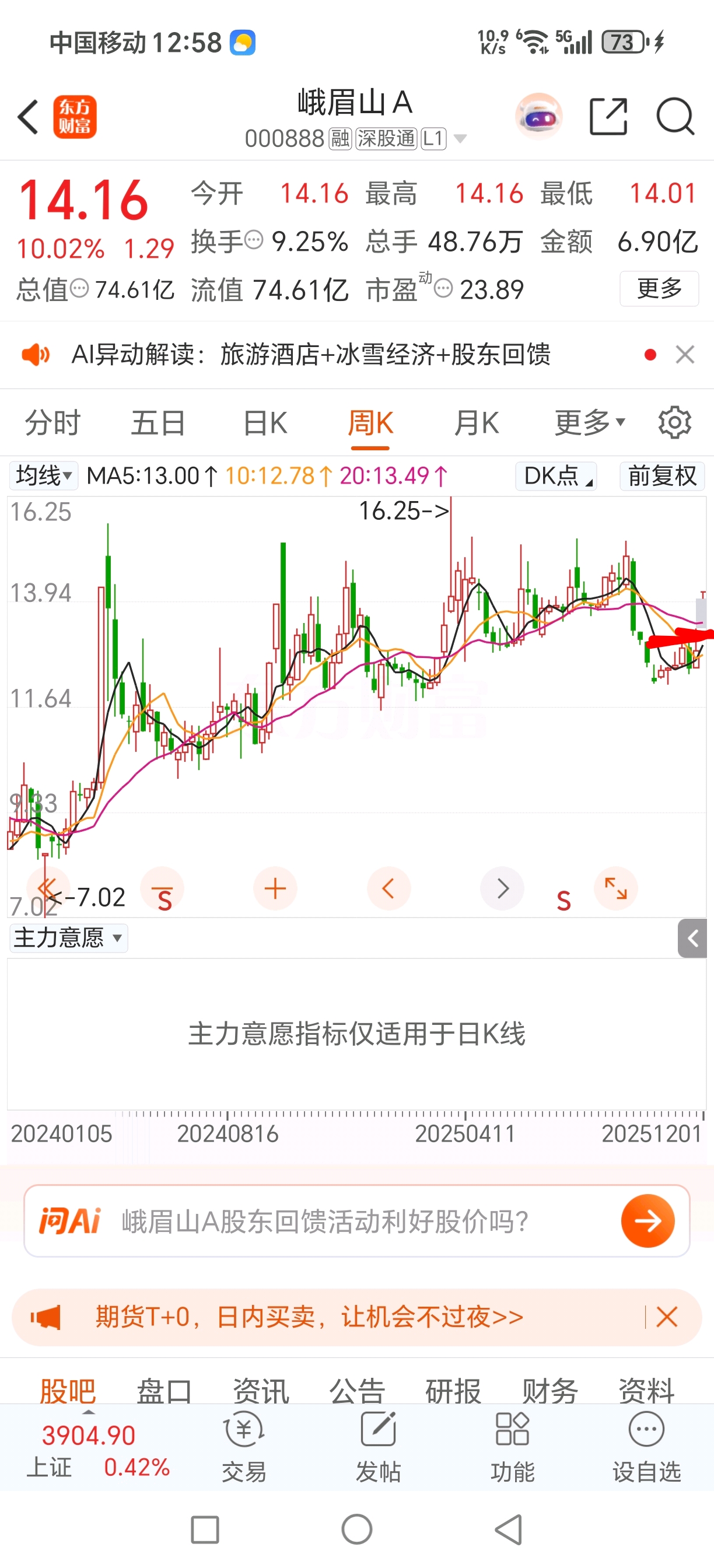$峨眉山A(SZ000888)$ 这主力格局很大,前段时间明显故意砸下来吸筹,配合这次促销活动走主升,首板还故意砸个口子给散户上车机会,就是要让第一批股东游客享受最好的服务,走的时候还能在股票上把钱赚了。锁仓半个月