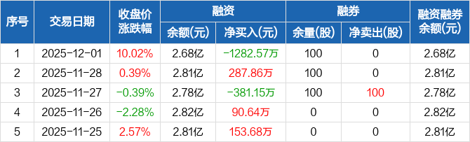 峨眉山A:融资净偿还1282.57万元,融资余额2.68亿元(12-01)