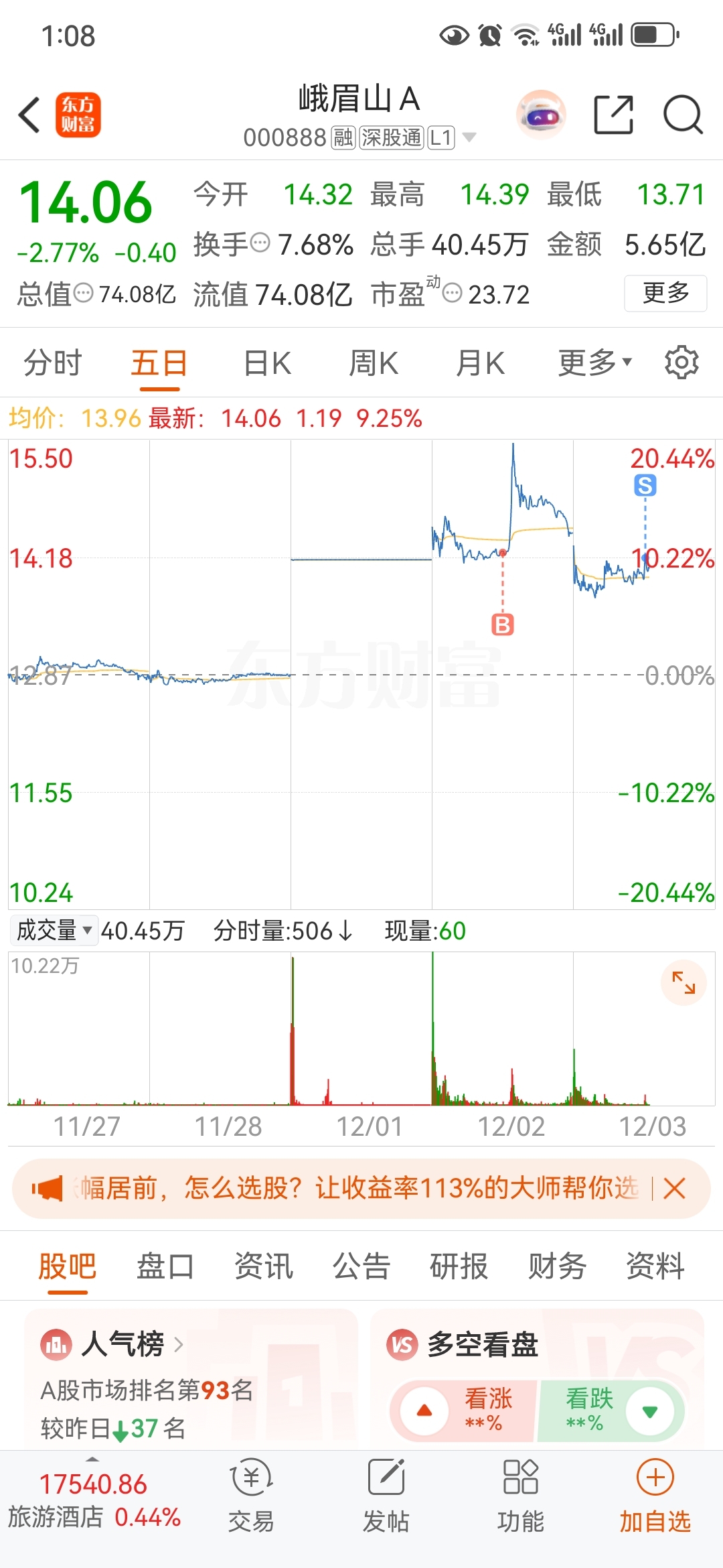 $峨眉山A(SZ000888)$ 耍猴一样,玩了个寂寞