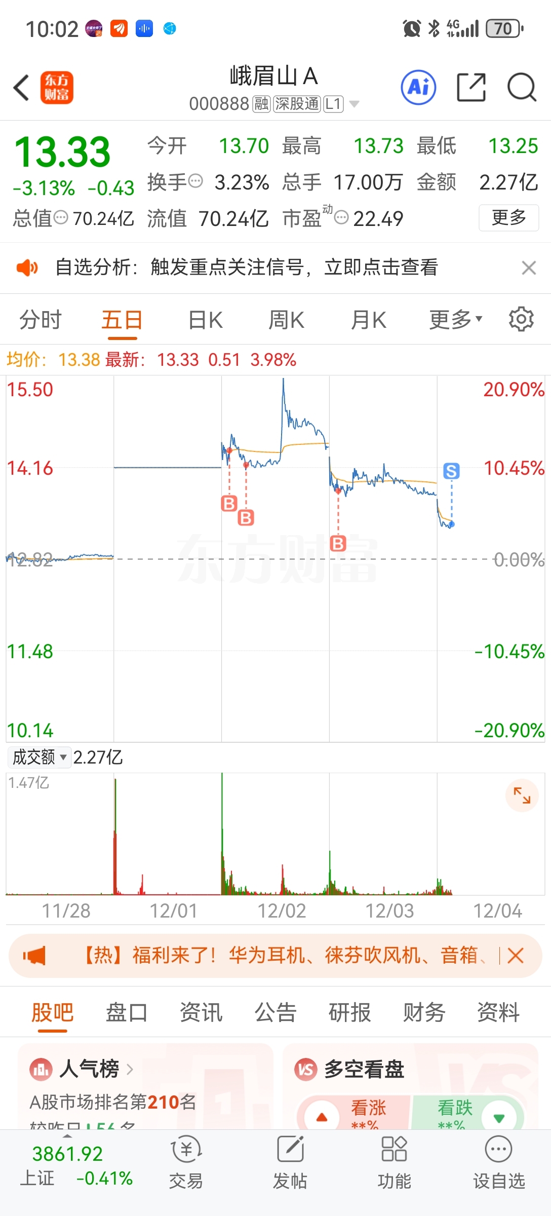 $峨眉山A(SZ000888)$ 愿赌服输 胎神娃娃