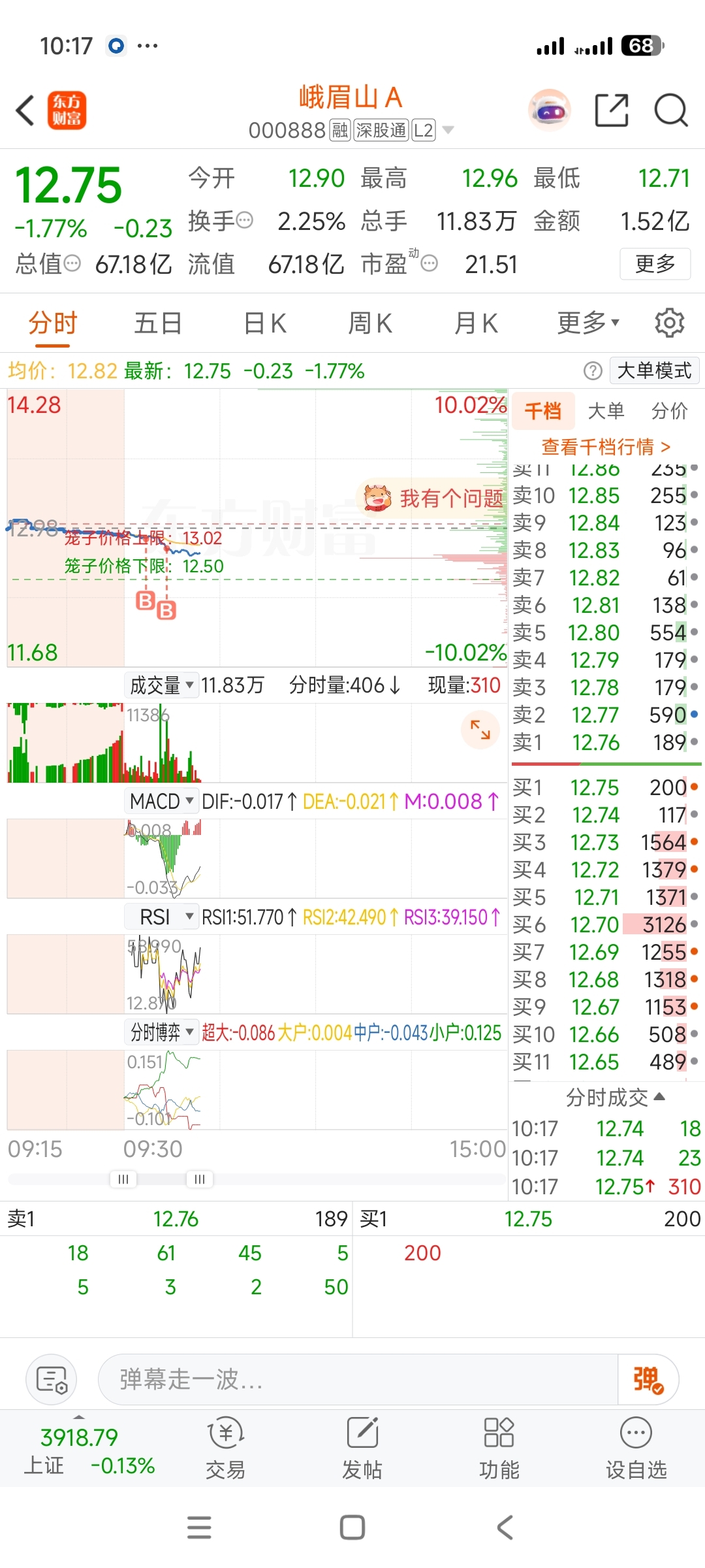 $峨眉山A(SZ000888)$ 不能买了太吓人了