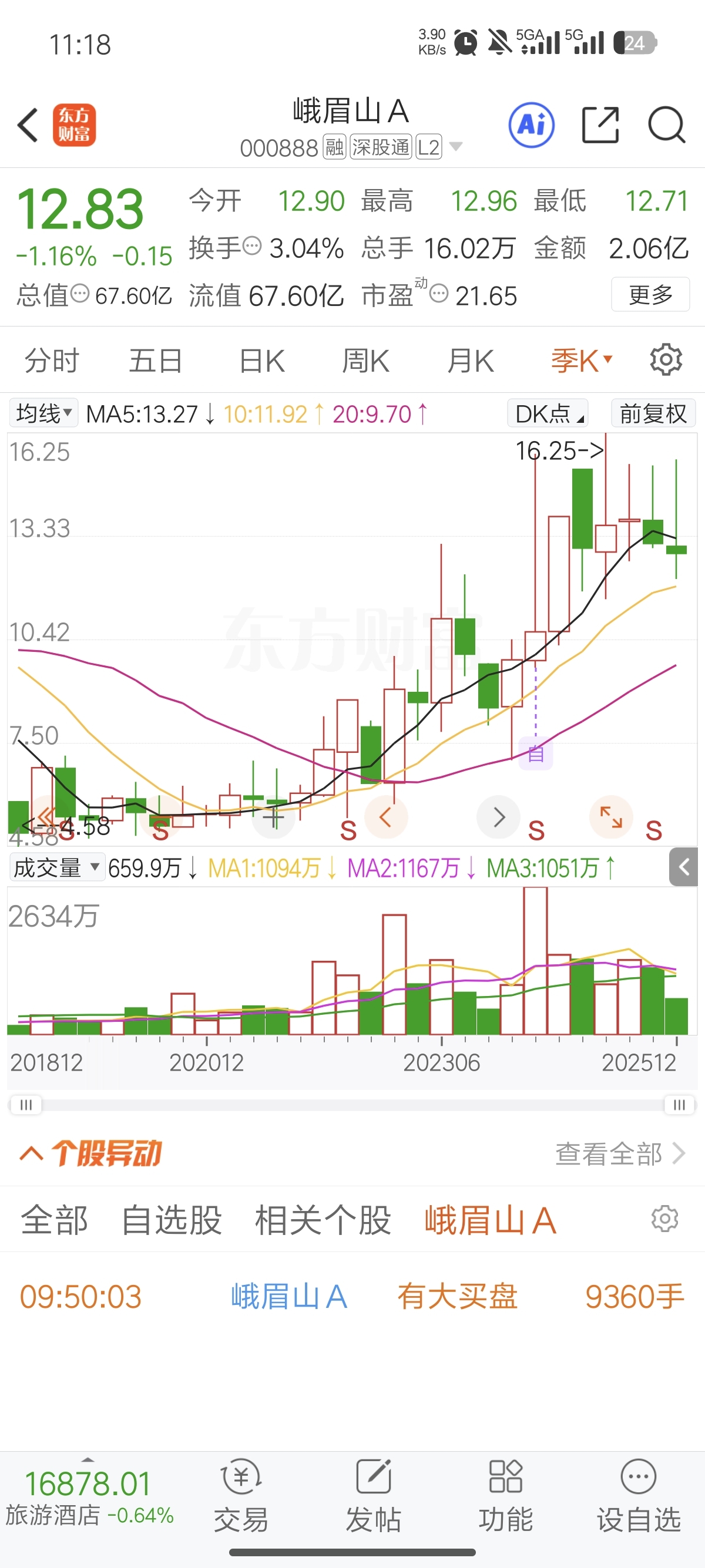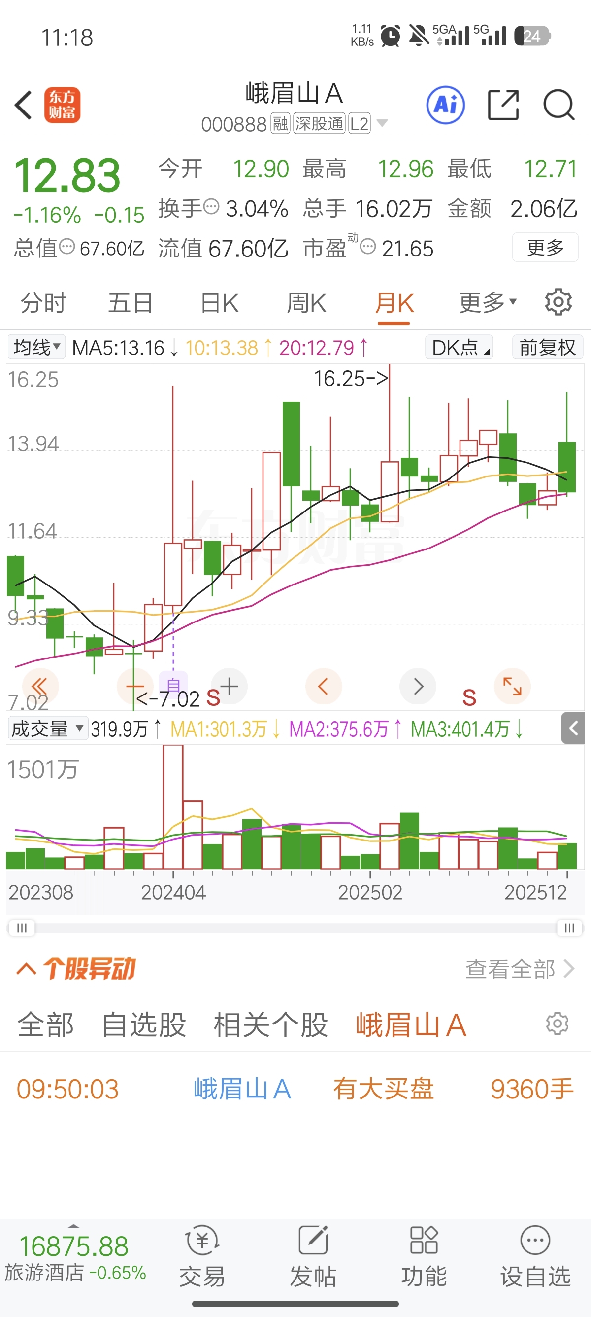 $峨眉山A(SZ000888)$ 各位大师别特么在这装杯分析峨眉山了。如果是出货,就应该跌破12一路向下,这个月又摸15.5,什么意思,就是来回晃悠恶心人,后面就是要往上突破高点18元。所以就该骂,你让我亏本金,我还不能骂你吗