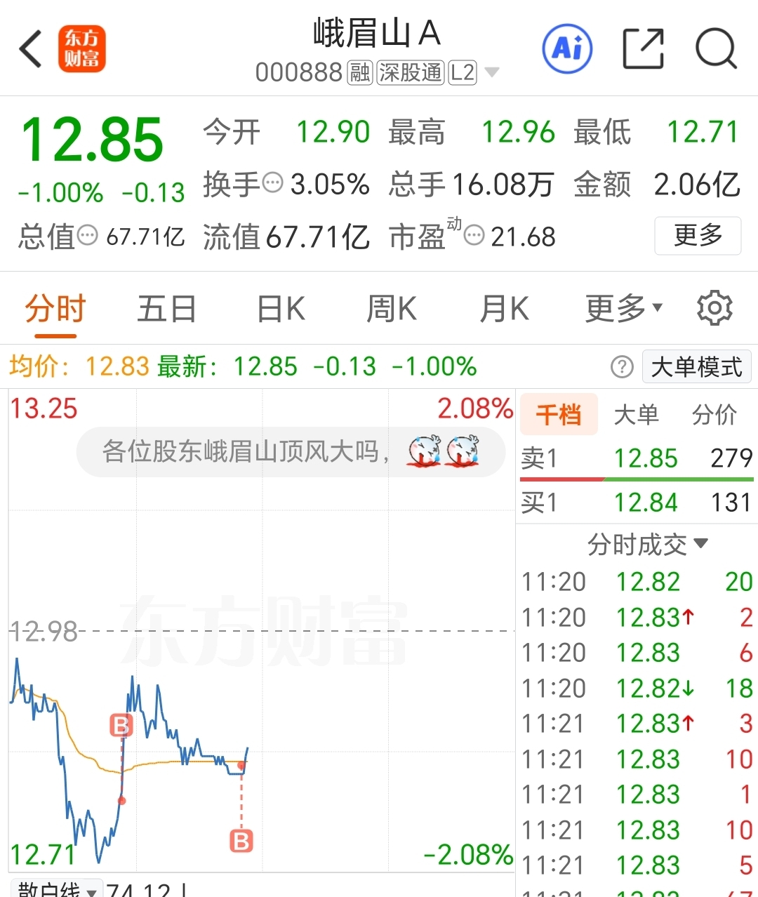 $峨眉山A(SZ000888)$ 已入手,一起崩猴子