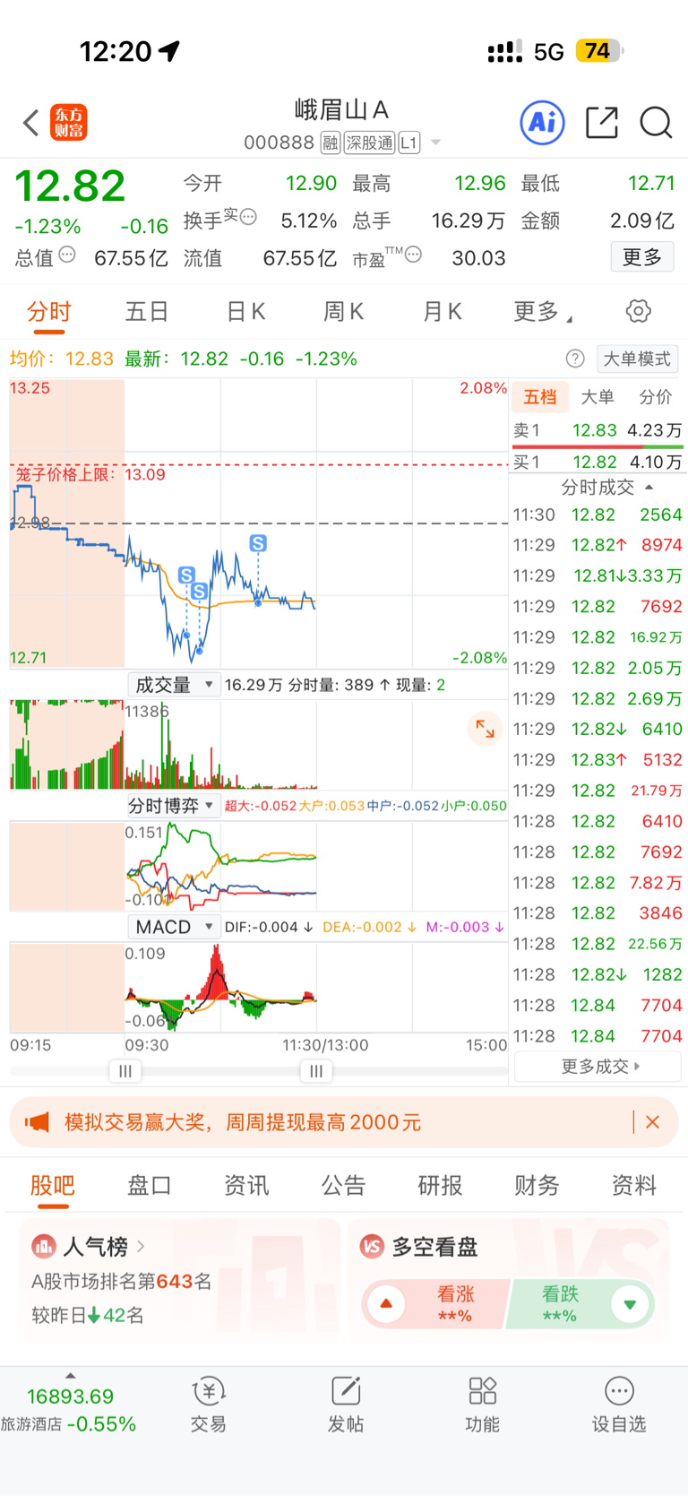 $峨眉山A(SZ000888)$ 一般来说,散户卖了,股票就涨了,我卖了,你们很快就涨了,你们坐稳扶好